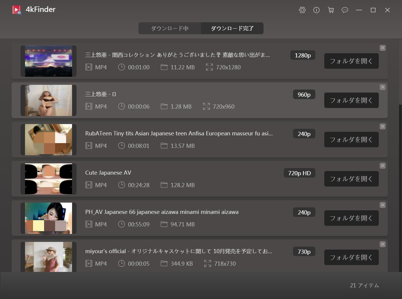 高品質のSpankBangビデオを取得したい場合は、ビデオダウンローダーを使用するのが最適です。そして中には4kFinderビデオダウンローダーは最高のツールです。このソフトは、SpankBangや、YouTube、Twitter、Pornhub、Xvideos、Tube8、xHamsterなどの1,000を超えるサイトからビデオをダウンロードできる強力なビデオダウンローダーです。最大6倍速度で変換でき、バッチダウンロードもサポートします。そして、ダウンロードした動画はすべて720P、1080P、2K、4K、または8K高品質の動画であり、よりいい視聴を体験できます。