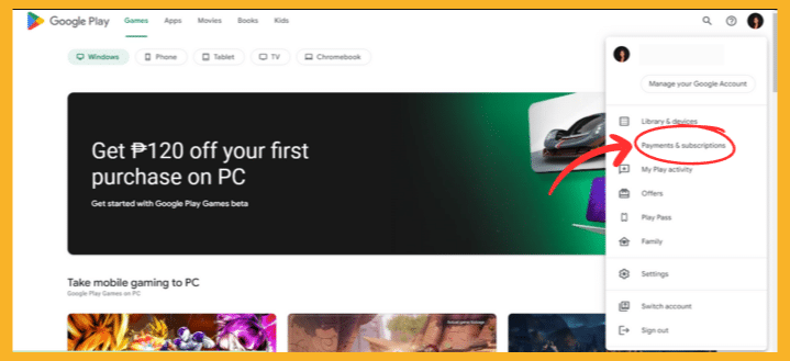 Step 2. Tap on your “Profile” icon in the top-right corner and select “Payments & subscriptions” option.