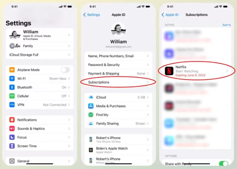 Step 3. Then tap “Subscriptions” > “Netflix” > “Cancel Subscription” option.