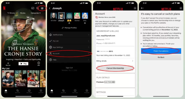 Another easy way to cancel Netflix Premium is using its mobile app.