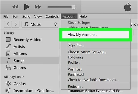 Step 2. Sign in with your Apple ID. Then click “Account” > “View My Account…”.