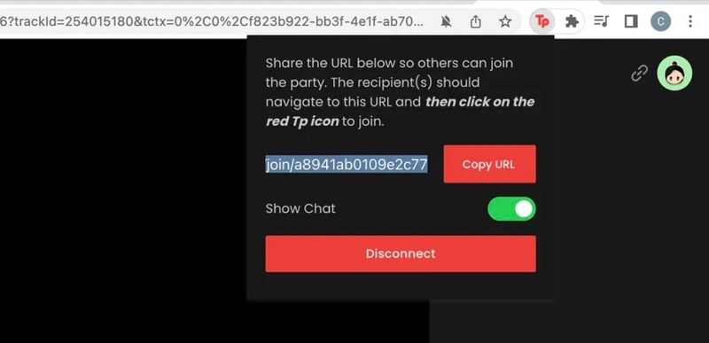 Step 3. Click the Teleparty icon in your browser and choose “Start the Party” to get a shareable link.