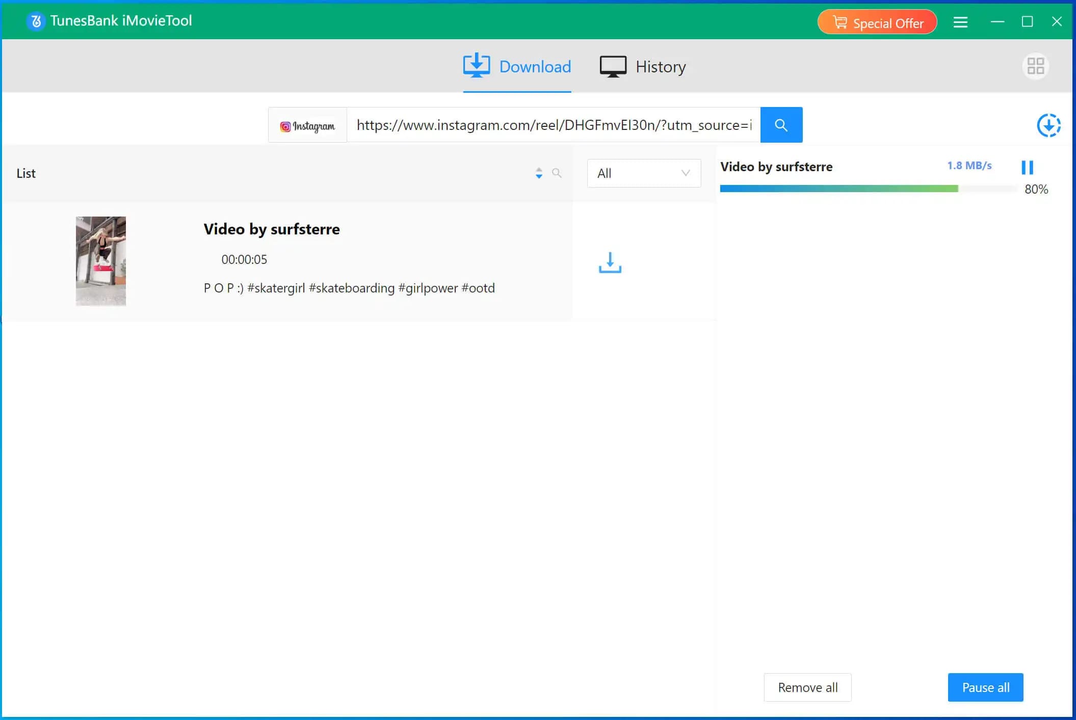 Steps to Download Video from Instagram to MP4 with iMovieTool