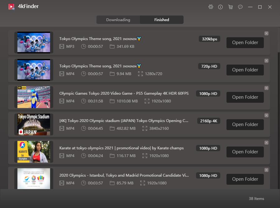4kFinder Video Downloader is one of the best video downloaders for Mac and Windows PC that allows you to download audios and videos from more than 1000 websites at 6X high speed, such as YouTube, Vimeo, Dailymotion, Facebook, Vevo, Netflix, Veoh, Niconico, Twitter, Bilibili, Instagram, SoundCloud, etc. Compared with other video downloaders, it supports 720p, 1080p HD, 2K, 4K, 8K and many more resolutions. With 4kFinder, you can easily download HD Olympic Games Tokyo 2020 video to MP4, WEBM, MOV and other popular formats without any hassle.