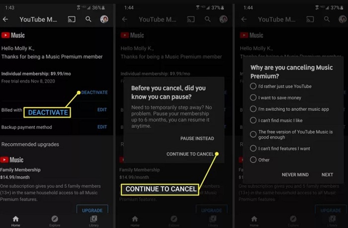 2) If you subscribed through YouTube itself, you can cancel your YouTube Music Premium subscription on your iPhone using the following steps: