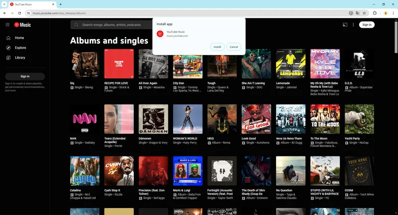 Once installed, YouTube Music will open as a desktop application, giving you a more app-like experience.